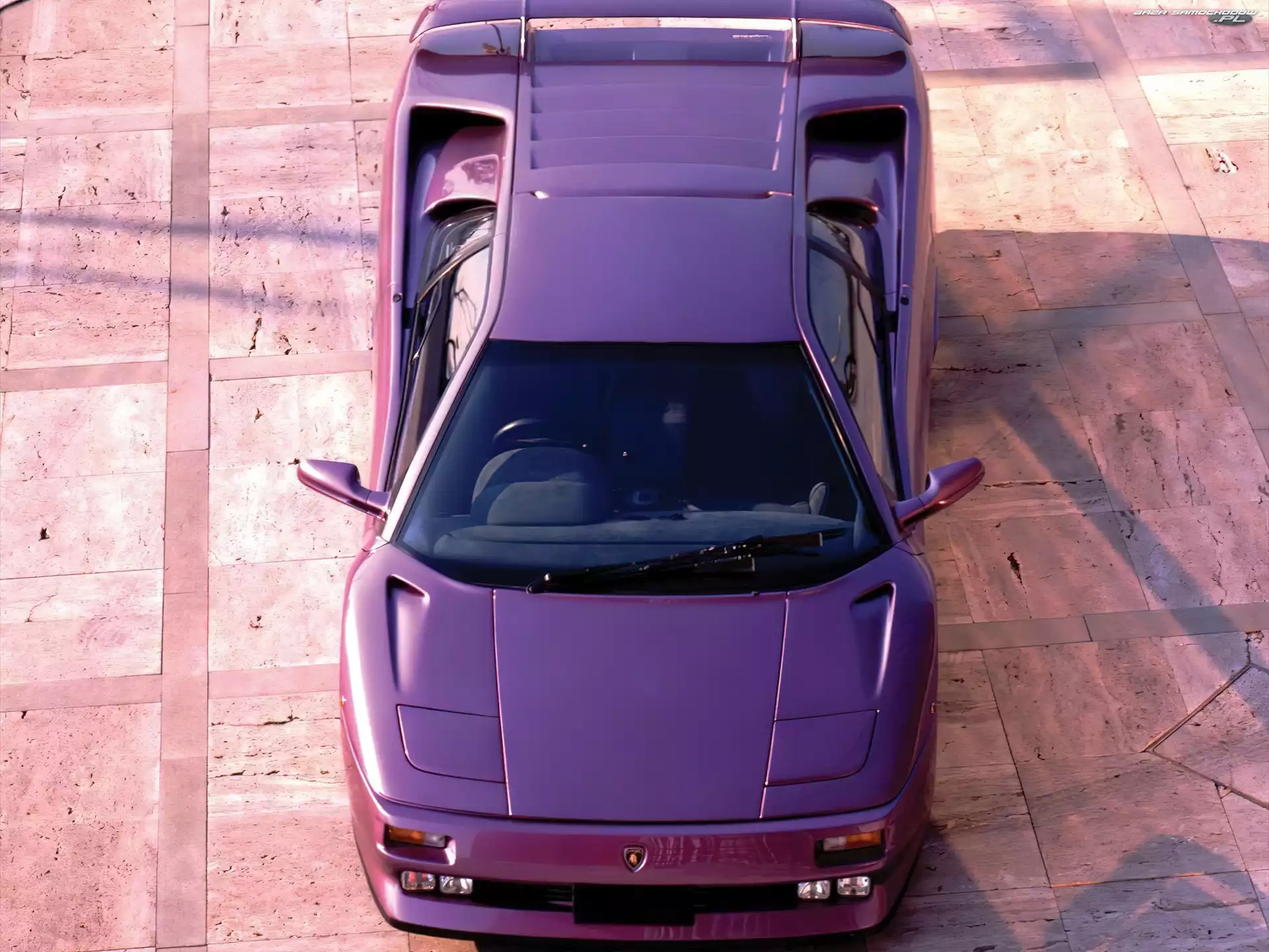Lusterka, Lamborghini Diablo Drzwi, Lamborghini Diablo, Fioletowe Lamborghini, Fioletowy, Chmury
