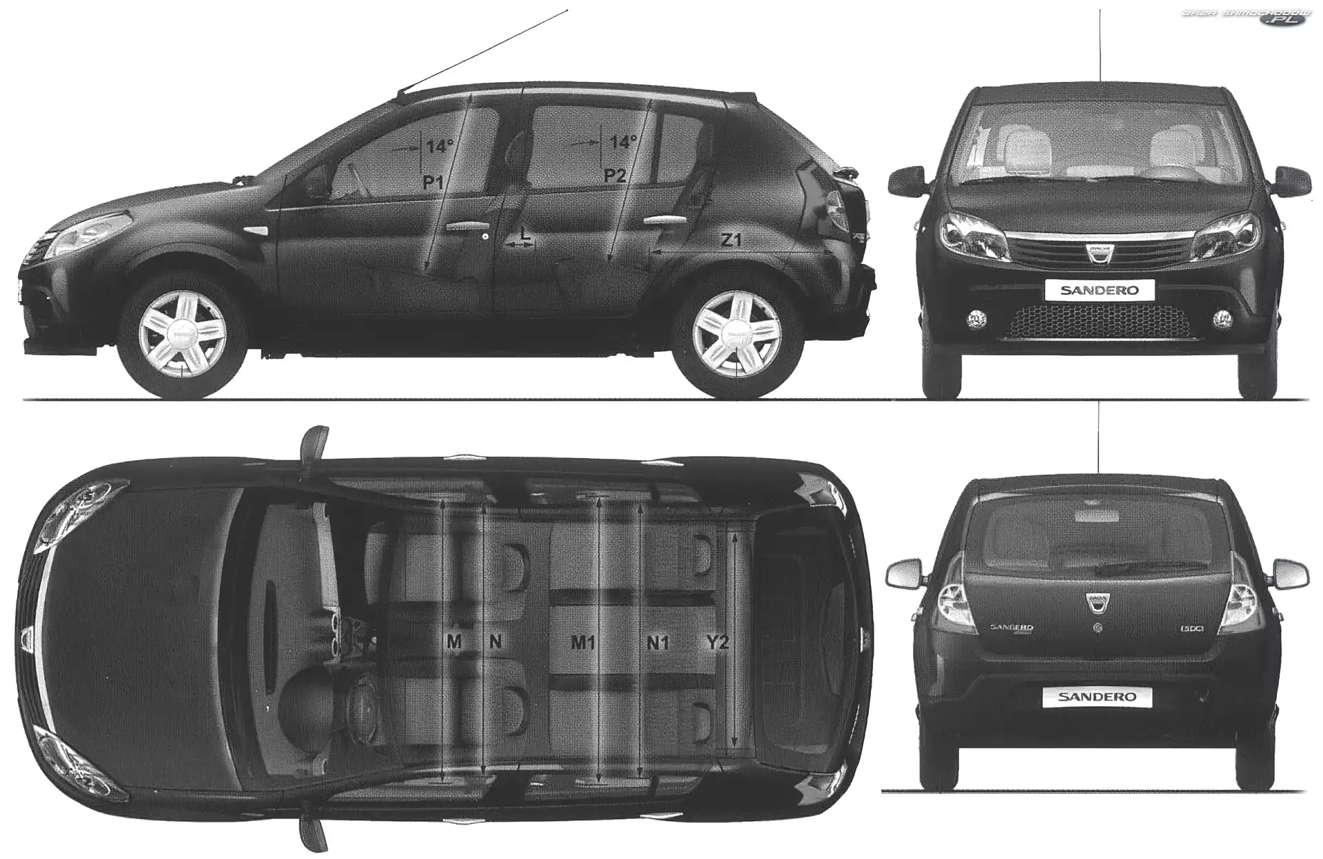 Wymiary, Dacia Sandero- Zdjęcia samochodów